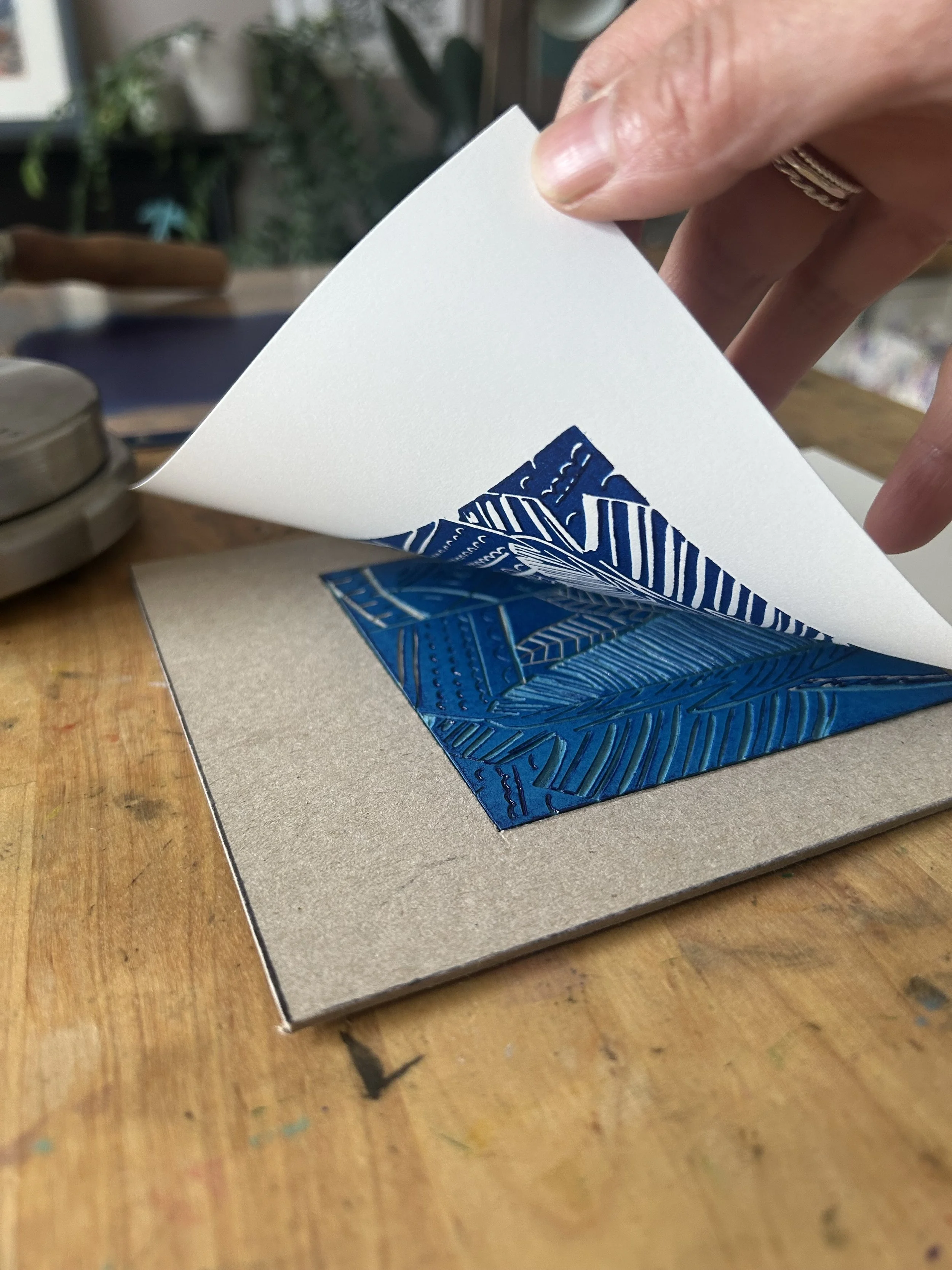 From Linocut prints to handmade cards to workshop experiences, explore my shop!